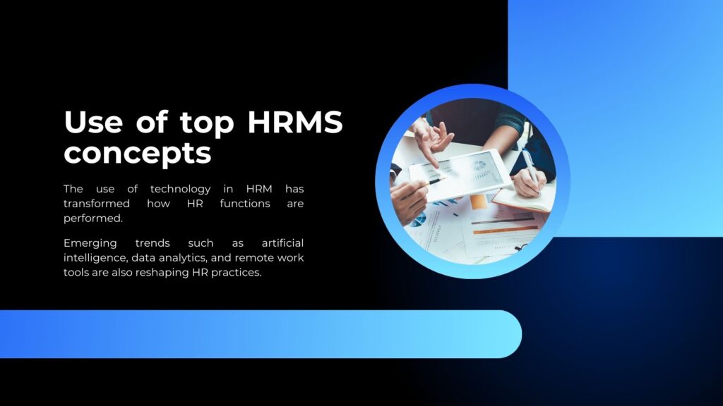 Automation is another key concept in modern HRMS. Workflow automation tools handle repetitive tasks such as approvals, notifications, and onboarding processes, reducing manual errors and saving time.